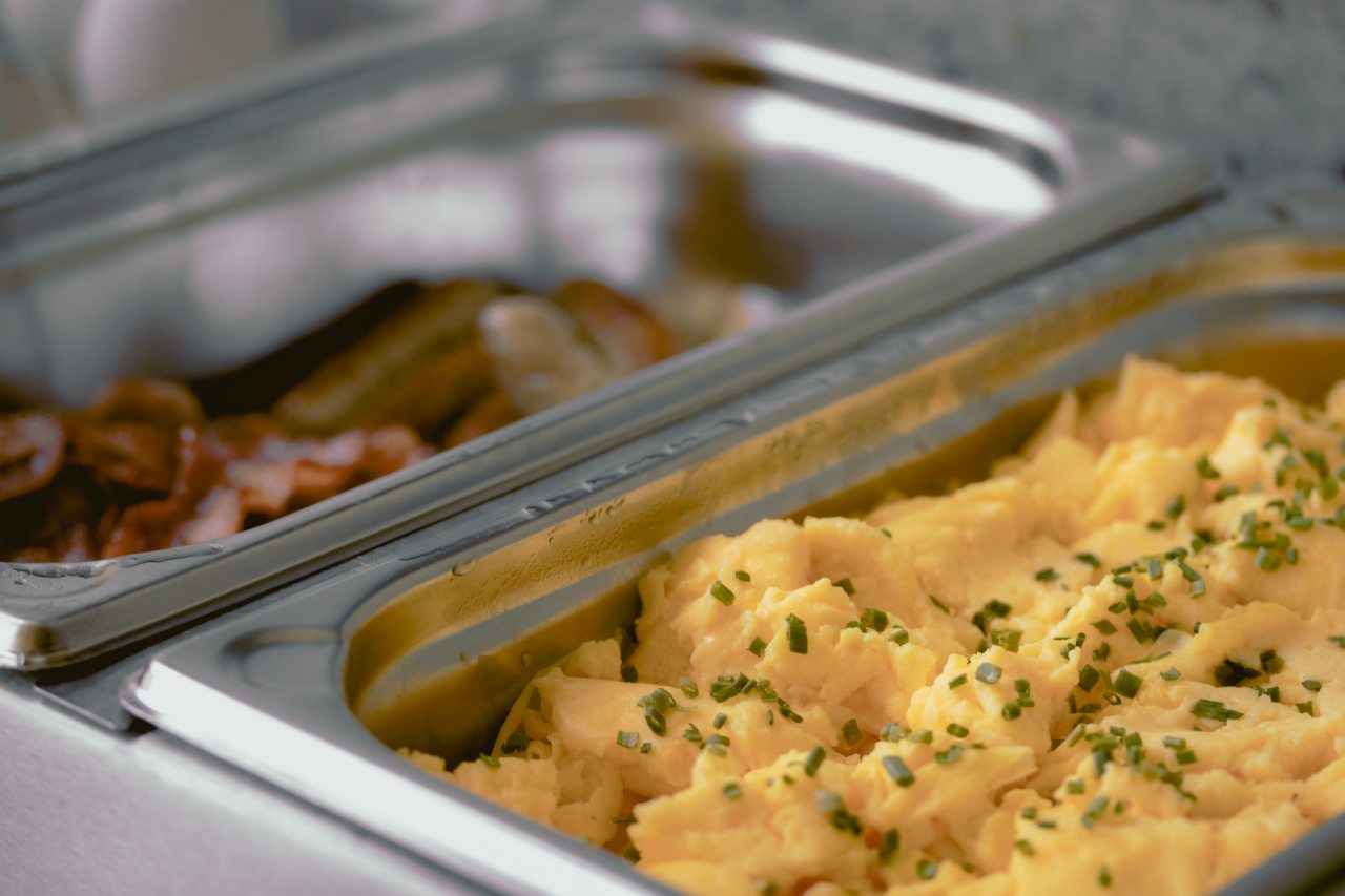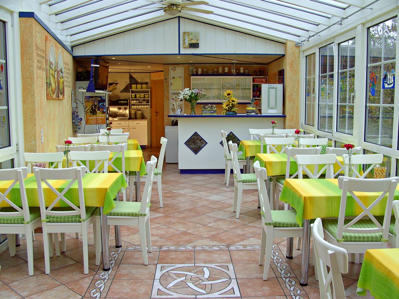 In unserem Wintergarten werden Sie mit einem reichhaltigen Frühstücksbüffet verwöhnt.