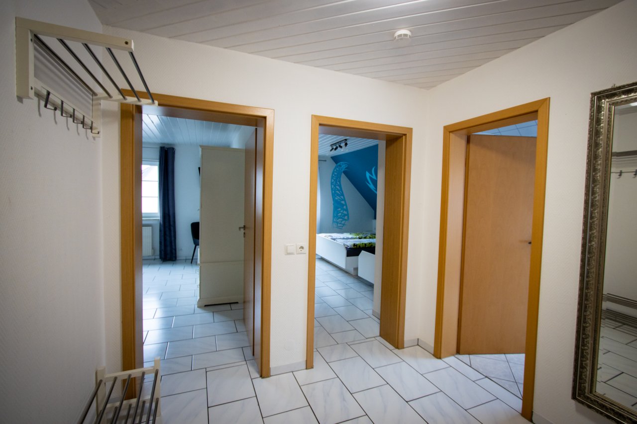 Unsere gemütliche Ferienwohnung hat 95 qm mit drei getrennten Zimmern. Jedes Zimmer enthält ein Doppelbett, ein Einzelbett, Radio und Flachbild TV. In der großen Küche können Sie Ihren kulinarischen Wünschen freien Lauf lassen.
