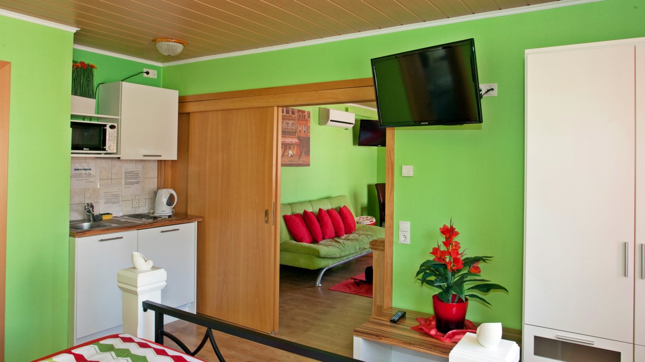 Dieses Appartment ist bis max 6 Personen geeignet. Auch eine kleine Kochnische steht Ihnen zur Verfügung. Jedes Zimmer verfügt über einen Flachbild TV.